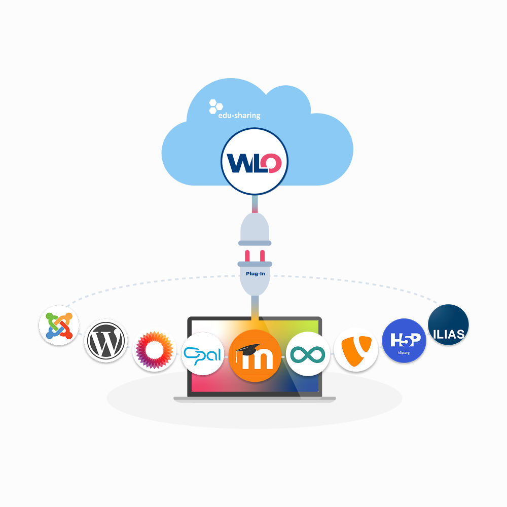 In allen modernen Lernplattformen können mit der WLO-Lösung verwaltete Inhalte nachgenutzt werden. Auch das MediaWiki und diverse WebCMS sind anschließbar.