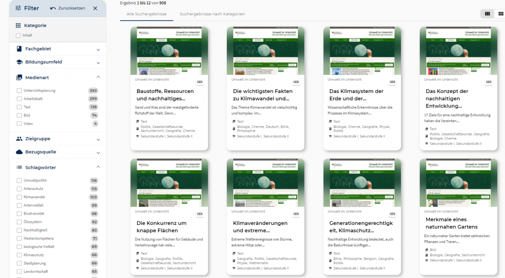 Umwelt im Unterricht ist mit über 900 Inhalten die neuste Quelle im Angebot von WirLernenOnline.