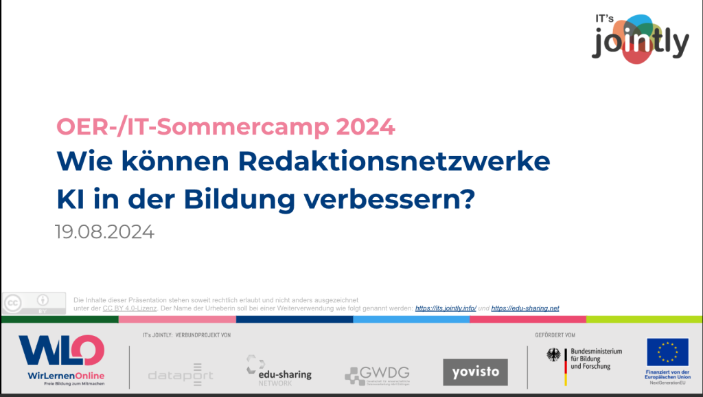 Jährlich treffen sich IT- und Bildungsfachleute, die OER-förderliche Infrastrukturen betreiben, entwickeln oder fördern zum OER-/ IT-Sommercamp.