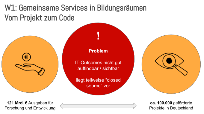 Um die Auffindbarkeit und Nachnutzung von IT-Komponenten zu verbessern, die in zahlreichen Förderprojekten entstehen, wurde ein Metadaten-Konzept für IT-Projekte entwickelt. Dieses Konzept sieht vor, dass Projekte neben ihren Berichten auch Informationen zu ihrer Softwarelösung standardisiert publizieren und dabei den Ablageort für Source Codes veröffentlichen. Außerdem sollten erfolgreiche Softwarekomponenten in einer gemeinsamen Bildungs-API zugänglich werden (z.B. via Mein Bildungsraum). Zudem wurde eine Empfehlung entwickelt, wie Metadaten in den Quellcodes besser auffindbar und nutzbar machen und wie diese Metadaten bei Open-Source-Projekten automatisch generiert werden können.