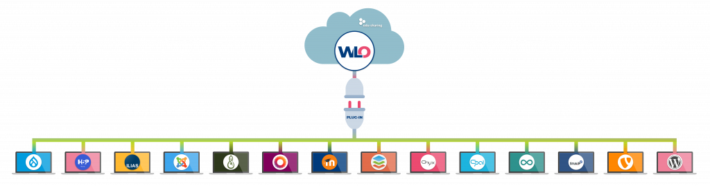 Über unsere Plug-ins kannst du WLO-Inhalte in deiner Plattform nutzen. Eigene Inhalte deiner Plattform kannst du über Schnittstellen bei WirLernenOnline bereitstellen. Die Links auf deine Inhalte gelangen so in alle angeschlossenen Plattformen und in Landesmediensammlungen.