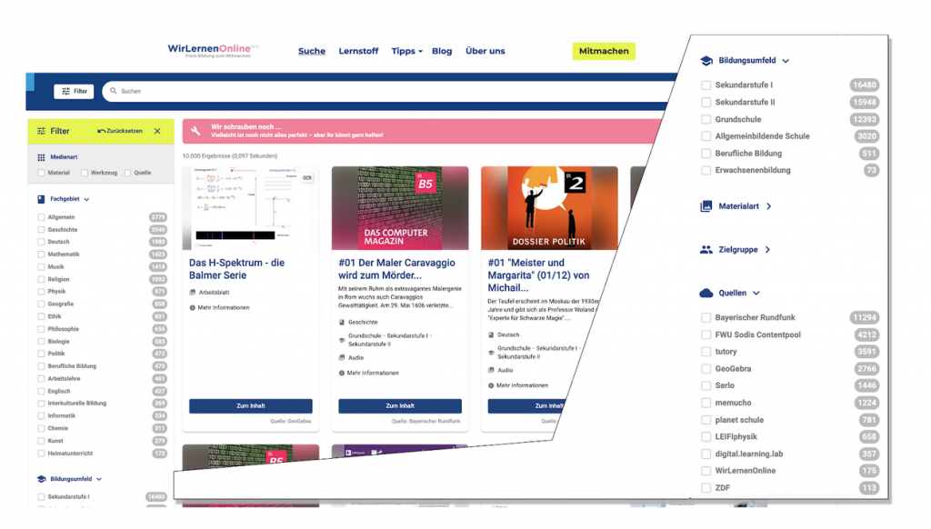 Unterrichtsmaterialien direkt finden – WirLernenOnline erweitert Funktionen