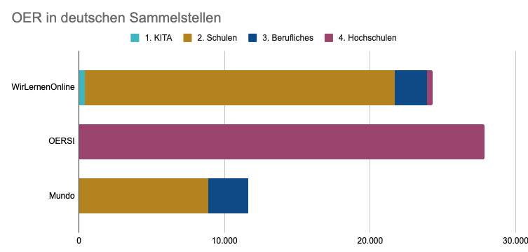 Es gibt noch mehr als die 3 bisher in der Statistik erfassten deutschen Sammelstellen und noch mehr im Ausland. Aber mit diesen 4 Projekten haben wir einen ziemlich großen Teil der für den deutschen Bildungsbereich erschlossenen Inhalte erfasst: