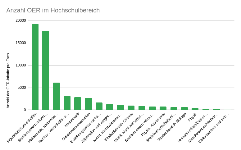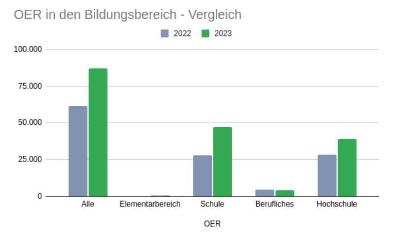 Im Vergleich zur Statistik aus dem Vorjahr ist hier ein signifikanter Unterschied zu erkennen. Vor allem im Schul- und Hochschulbereich sind OER-Materialien bereits stark vertreten.