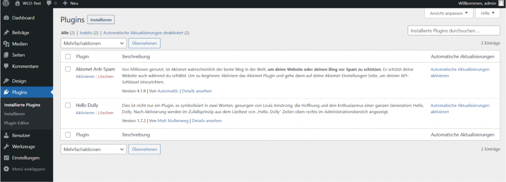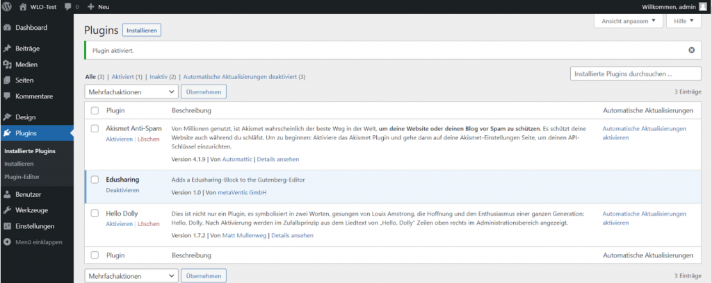 Das kannst du nun auch in der Liste aller aufgeführten Plug-ins kontrollieren (hier blau hinterlegt)