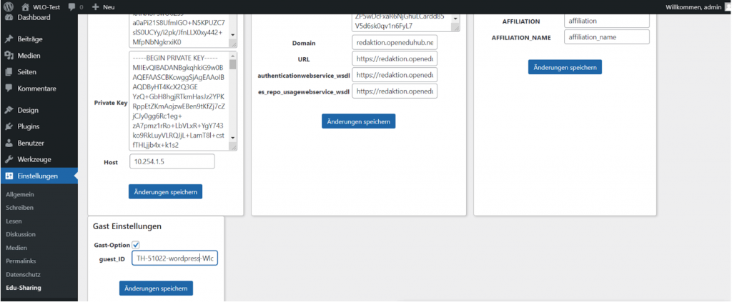 Lade jetzt deine WordPress-Webseite neu. Im Hauptmenü unter “edu-sharing” findest du unten auf der Seite die “Gast Einstellungen”.